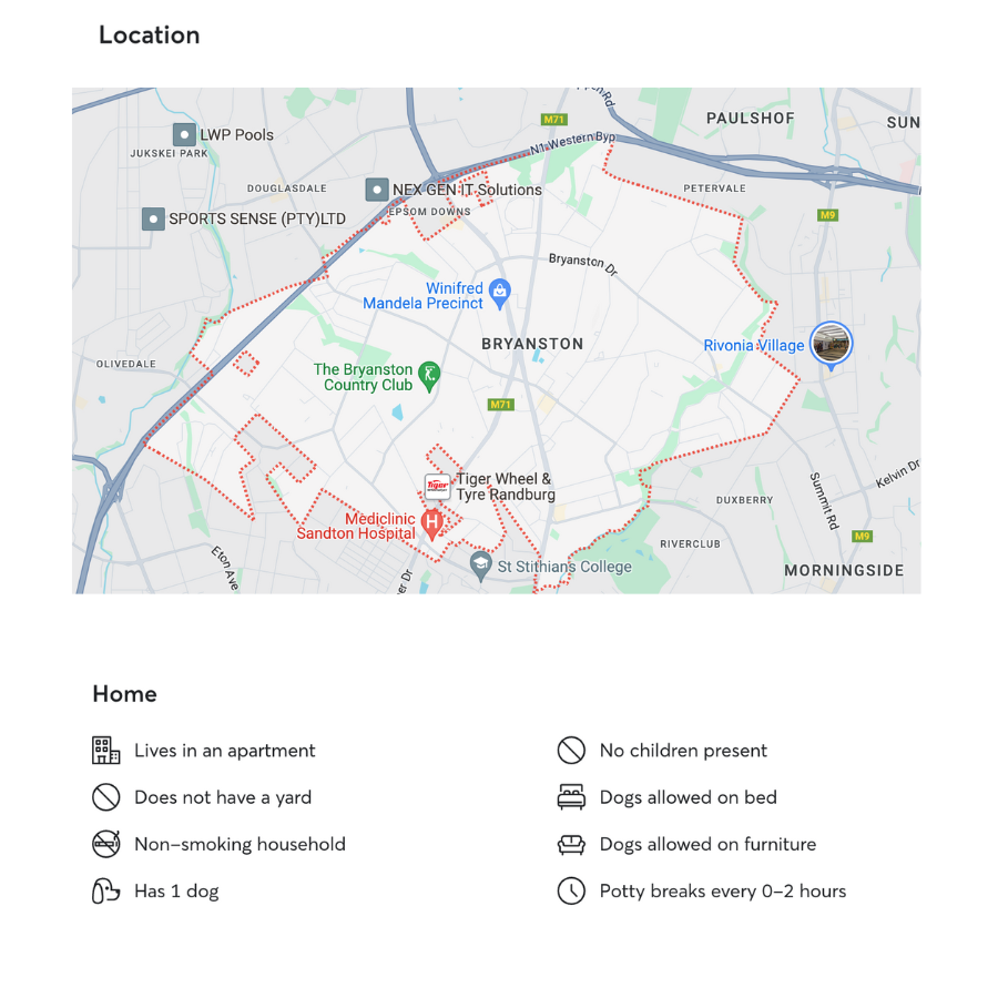 I have cared for pets all my life, including a family dog and my 2-year-old pup, as well as birds and cats. I have experience with senior dogs, puppies, and puppy training, along with a solid understanding of their unique needs at different life stages. Additionally, I’m skilled in grooming and cooking balanced meals for dogs.